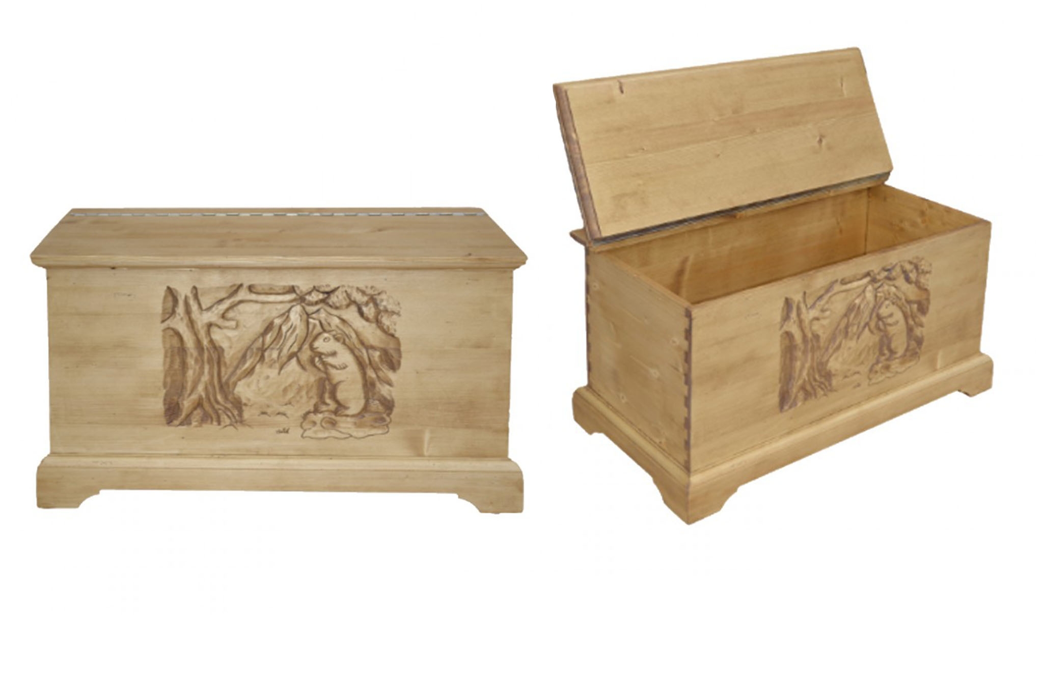 Na truhlu bylo při výrobě použito jedlové dřevo, které truhláři s mnohaletými zkušenosti ručně zhotovili a vyřezali. Tento kus nábytku je originální, což znamená, že nikdy nenajdete totožný kus.