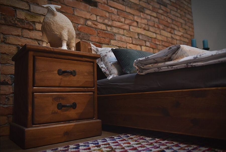 Pravidlem číslo jedna a taky samozřejmostí je, vytvoření ložnice pomocí velkého množství dřeva. Tento materiál by se měl objevovat všude. Od trámu na stropě, postranních stolů až po noční stolky. Jestliže vaše místnost nabízí dřevěnou podlahu, máte výhodu a vaše ložnice bude okamžitým dojmem působit přirozeně. Z naší kolekce Rustyk, doporučujeme k tomuto kroku noční stolek rustyk 2, který oplývá svou jednoduchou elegancí a dokáže vytvořit dokonalý pár s jakýmkoliv lůžkem z této kolekce.