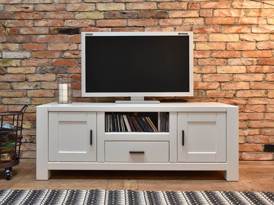 Tato Tv skříňka je široká 140 centimetrů a vysoká 52 centimetrů. Obsahuje dvě skříňky, jednu zásuvku a jednu polici. I při nepříliš obrovských rozměrech vám tento stolek nabídne komfortní a dostatečný úložný prostor.